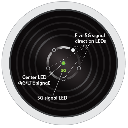 Signal Direction 5 LEDs in the outer ring of the LED panel | Off | Modem is turned off or 5G signal not detected. Reposition the modem (near a window is ideal). |