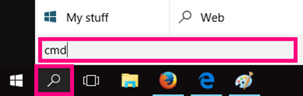 bottom left-hand corner of the screen and type "cmd" into the